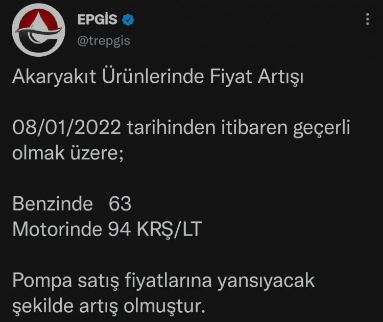 EPGİS'ten Duyuru: Akaryakıta Yine Zam!