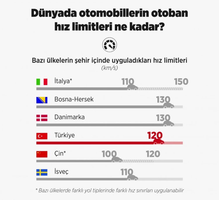 Otobanlarda km olan hız sınırı 140 km ye çıkarılacak. İlk etapta bazı otoyollar bu uygulama için müsait olarak belirlendi.