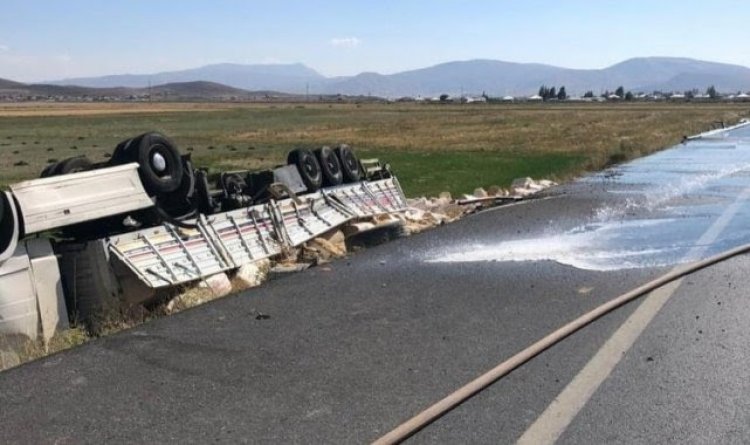 Van’ın Çaldıran ilçesinde saman yüklü TIR'ın devrilmesi sonucu 1 kişi yaralandı.