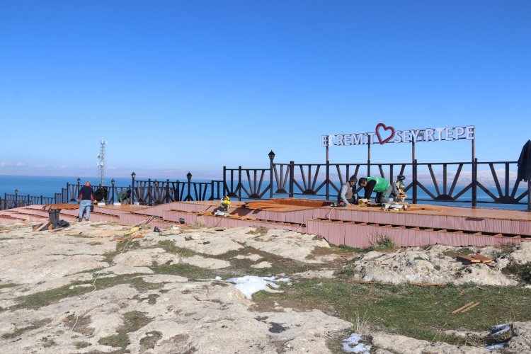Van’ın Edremitn ilçe belediyesi kentin en çok tercih edilen bir yeri olan Seyir Tepesi’nde yeni bir görünüm için çalışmalara başladı. Her mevsim, yoğun bir ziyaretçi kitlesini ağırlayan alanın merdiven ve yürüyüş yolu yenileniyor. Belediye ekipleri, tahrip olması sonucu kaza ve kaymalara neden olan eskimiş deckleri yeni ahşap decklerle değiştiriyor. 600 metre boyunca yapılan çalışmalarla, yürüyüş yolunun aşınmalara karşı daha dirençli olması amaçlanmaktadır.