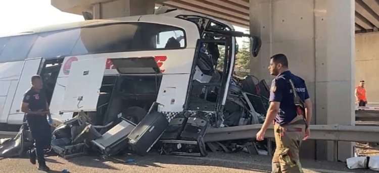 Ankara'nın Polatlı ilçesinde yolcu otobüsü köprünün ayağına saplanması sonucu meydana gelen trafik kazasında ilk belirlemelere göre 11 kişi hayatını kaybetti. Kazayla ilgili soruşturma devam ediyor.