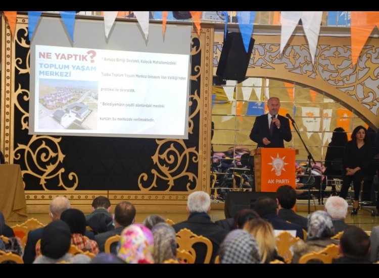 AK Parti Tuşba İlçe Başkanlığı 'Danışma Kurulu Toplantısı'na katılan Tuşba Belediye Başkanı Salih Akman, partililere 3 yıllık görevi süresince hayata geçirdiği projelerini anlattı.