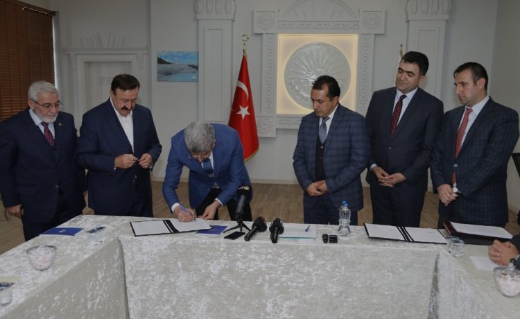 Daha sonra Vali Mehmet Emin Bilmez ve sendika yöneticileri arasında karşılıklı imzalar atıldı.