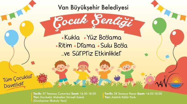 Van Büyükşehir Belediyesi, 27–28 Temmuz tarihlerinde “Çocuk Şenliği” programı gerçekleştirilecek.
