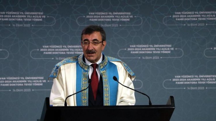 Cumhurbaşkanı Yardımcısı Cevdet Yılmaz, Van'daki programları kapsamında, Yüzüncü Yıl Üniversitesi (YYÜ) Akademik Yılı Açılışı ve Fahri Doktora Tevdi Töreni'ne katıldı.
