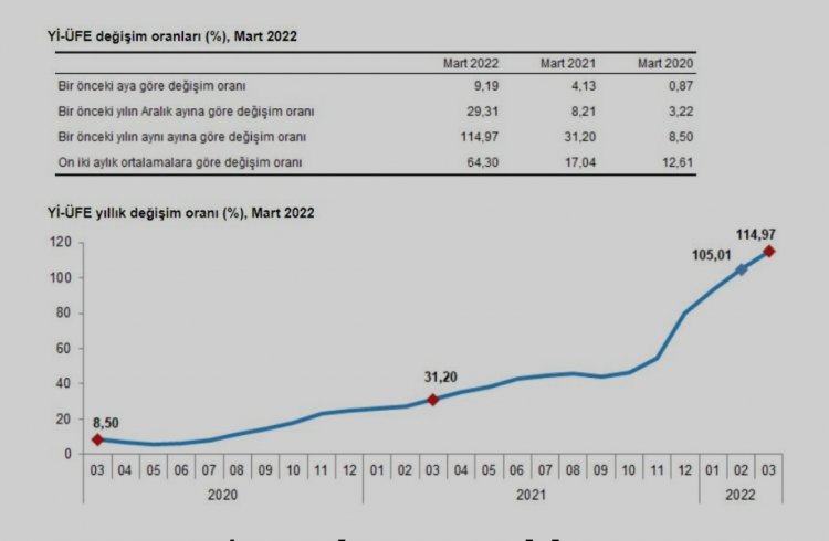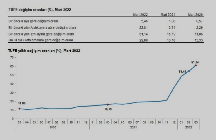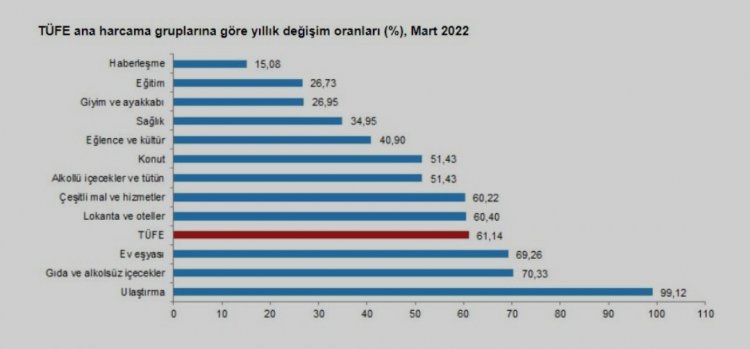Resmi verilere göre aylık bazda en fazla akaryakıt fiyatları (benzin % 24,41, motorin % 32,67) arttı. Örneğin, Rusya-Ukrayna savaşının da etkisiyle raflardaki fiyatı yaklaşık % 50 yükselen ayçiçek yağındaki artış TÜİK'e göre sadece % 13,34'te kaldı. Şubat ayında fiyatı 9-11 lira olan yerli muz marketlerde 16-17 liraya yeni % 50'nin üzerinde gelmesine karşın TÜİK'e göre yüzdelik artış % 13 kalmaktadır. Buda ayrı bir çelişki.