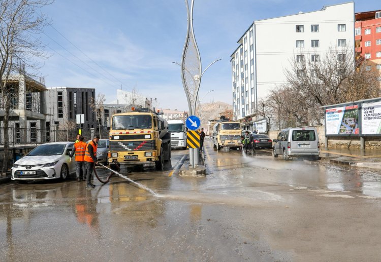 Van Büyükşehir Belediyesi tarafından kentin bir çok farklı noktasında başlatılan bahar temizliği çalışmaları kapsamında tüm ana caddelerde temizlik ve yıkama yapılıyor. Titizlikle sürdürülen geceli gündüzlü çalışmalarda yol ve kaldırımlar kıştan kalma toz ve çamurdan arındırılıyor.