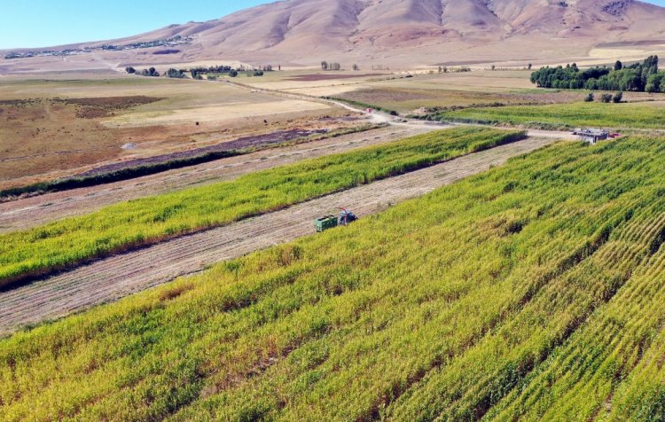 Van Büyükşehir Belediyesi’nin çiftçilerin ekin ve biçim de tarlarında kullanmaları için temin ettiği tarım makinaları, üreticiye büyük katkı sağlıyor. Oldukça verimli bir sezon geçiren mısır üreticileri çift sıralı sılaj hasat makinasıyla dönümde 12 ton mısır elde ediyor.