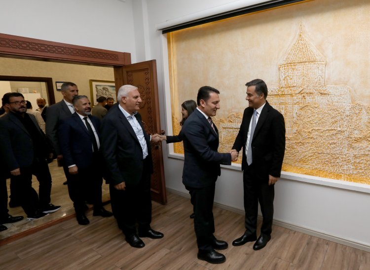Van Büyükşehir Belediye Eşbaşkanlarımız Neslihan Şedal ve Abdullah Zeydan’a ziyaretler devam ediyor. VAN FED (Van Dernekler Federasyonu) Genel Başkanı Mehmet Fatih Yağız ve yönetim kurulu üyeleri Eşbaşkanlarımızı belediye binasında ziyaret ederek, plaket takdim etti.